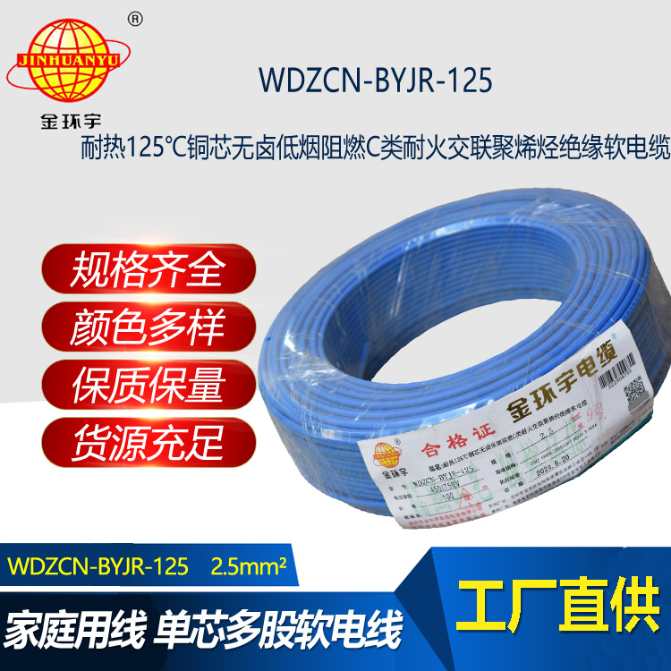 WDZCN-BYJR-125低煙無鹵電線,是一款銅芯耐熱125℃的軟電線,采用了C類耐火交聯(lián)聚烯烴絕緣材料制成。該電線具有阻燃耐火性能優(yōu)良、電氣性能穩(wěn)定和安全可靠的特點(diǎn)。在電力傳輸和工業(yè)領(lǐng)域中廣泛應(yīng)用。